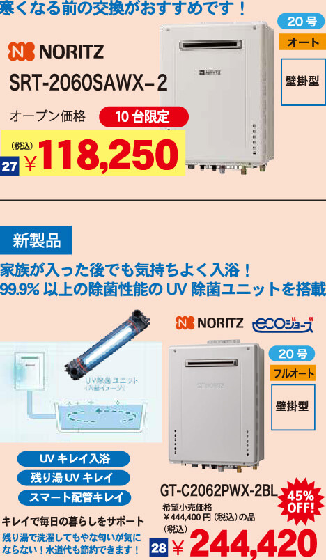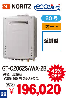 ※給湯器本体の価格です。リモコン・暖房配管・その他部材・工事費別途